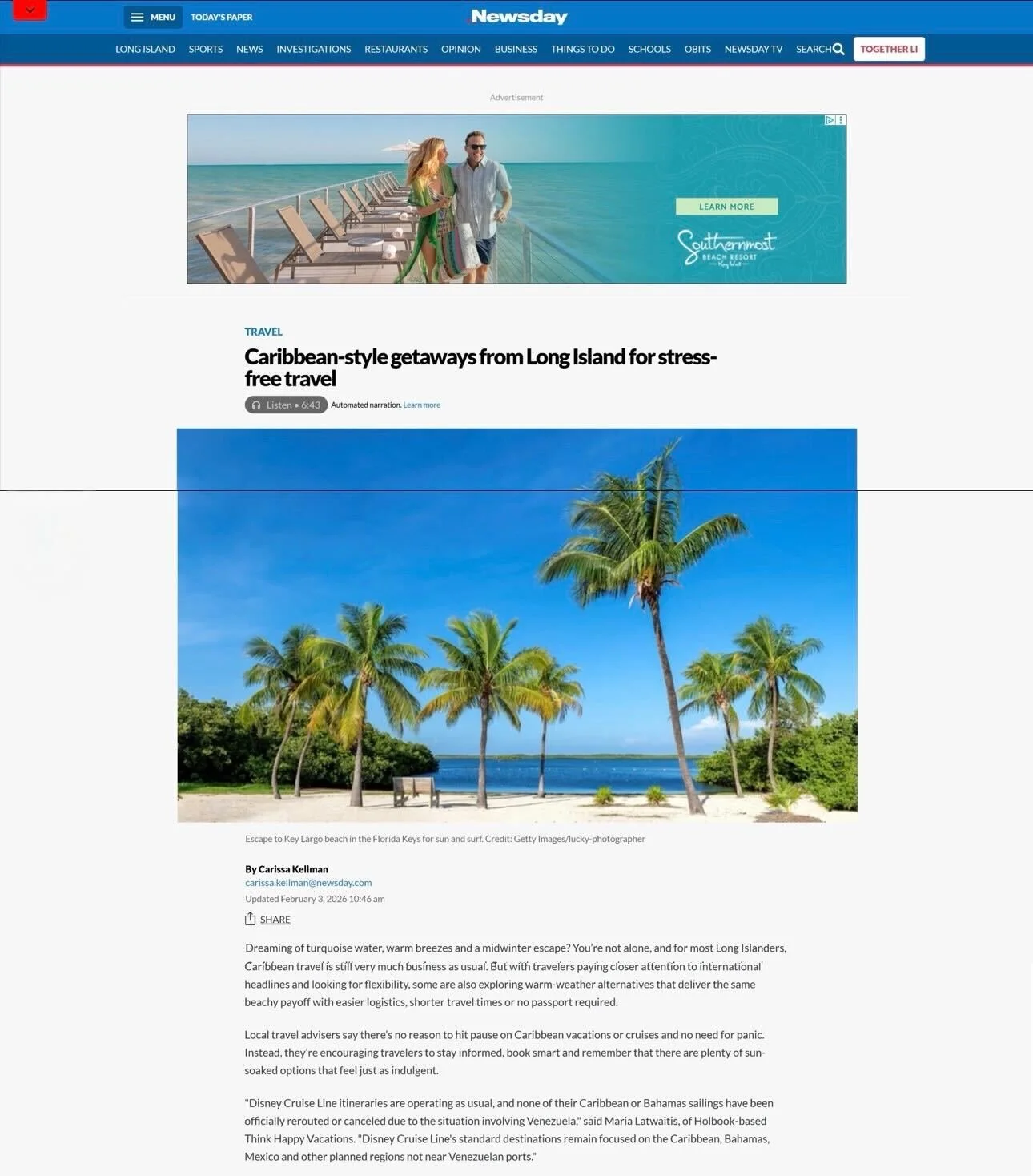TRAVEL NEWSDAY: Caribbean-style getaways from Long Island for stress-free travel Feb 3 Written By Guest User SEE FULL FEATURE Guest User